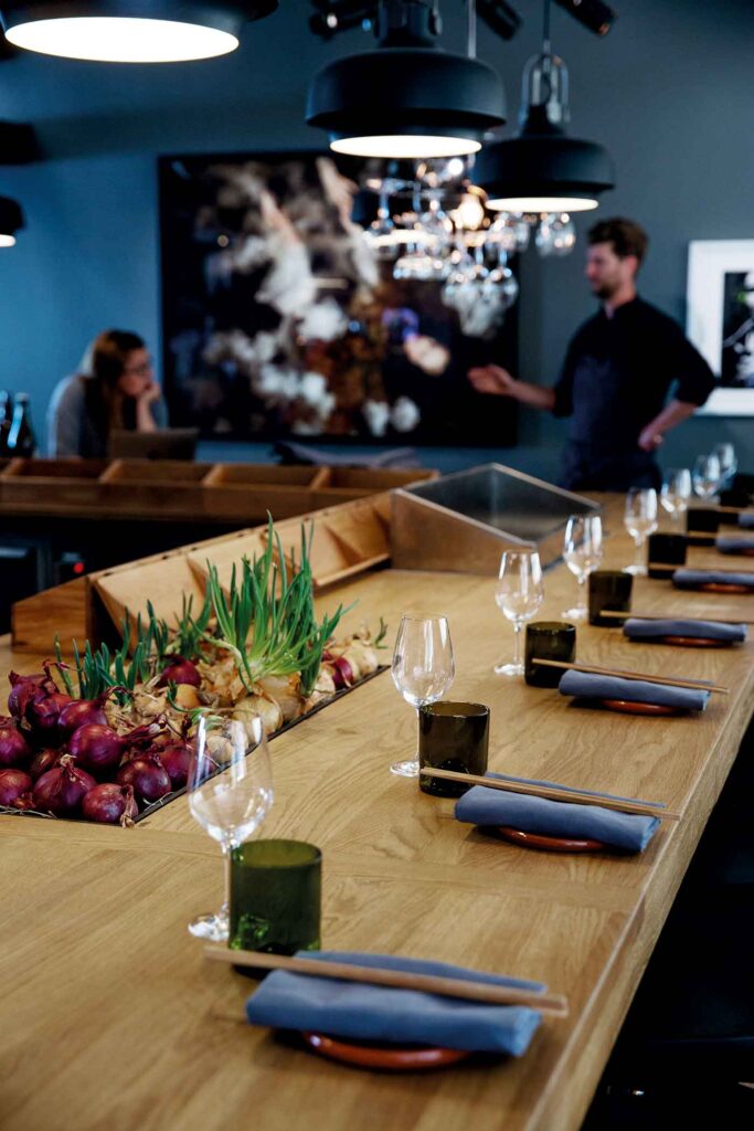 Fem mil därifrån, i Fotografiska museets restaurang på Södermalm i Stockholm, lägger toppkocken Paul Svensson sista handen vid dagens meny. Snart kommer 16 middagsgäster hit för att ta del av den sju serveringar stora menyn och det första som möter oss är en enorm bukett ängsblommor från gården. Paul Svensson ställer fram rustika tallrikar på bardisken.