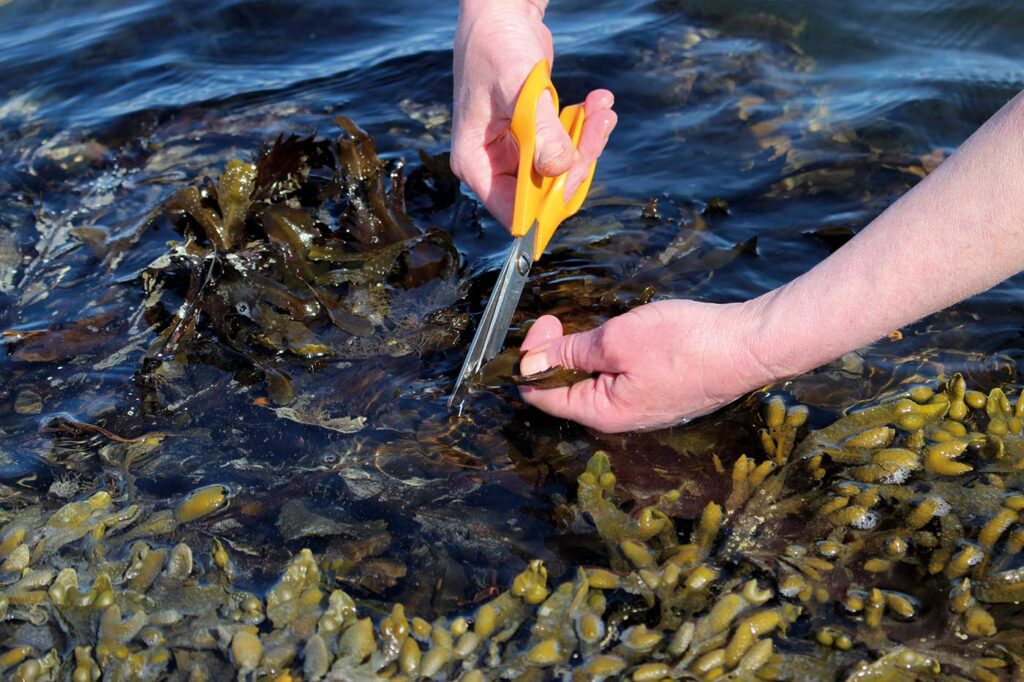 — Först och främst måste tången vara ren och fräsch. Plocka inte tång från stranden. Den måste skördas i havet. Skär av ca 10 centimeter av de yttersta skotten på blåstång eller sågtång. Från de stora bladalgerna, som sockertång och fingertång, kan allt användas.