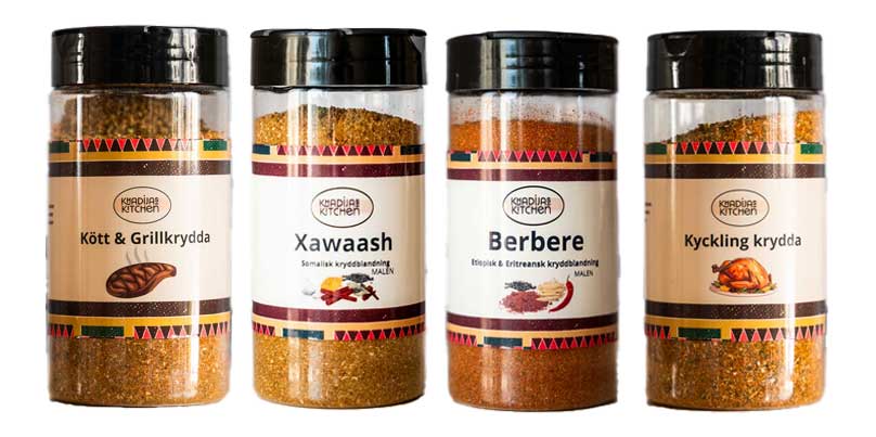 Khadija har nu börjat sälja fyra olika kryddblandningar: Berbere, Xawaash, Kycklingkrydda och Kött & grillkrydda. Beställ här.