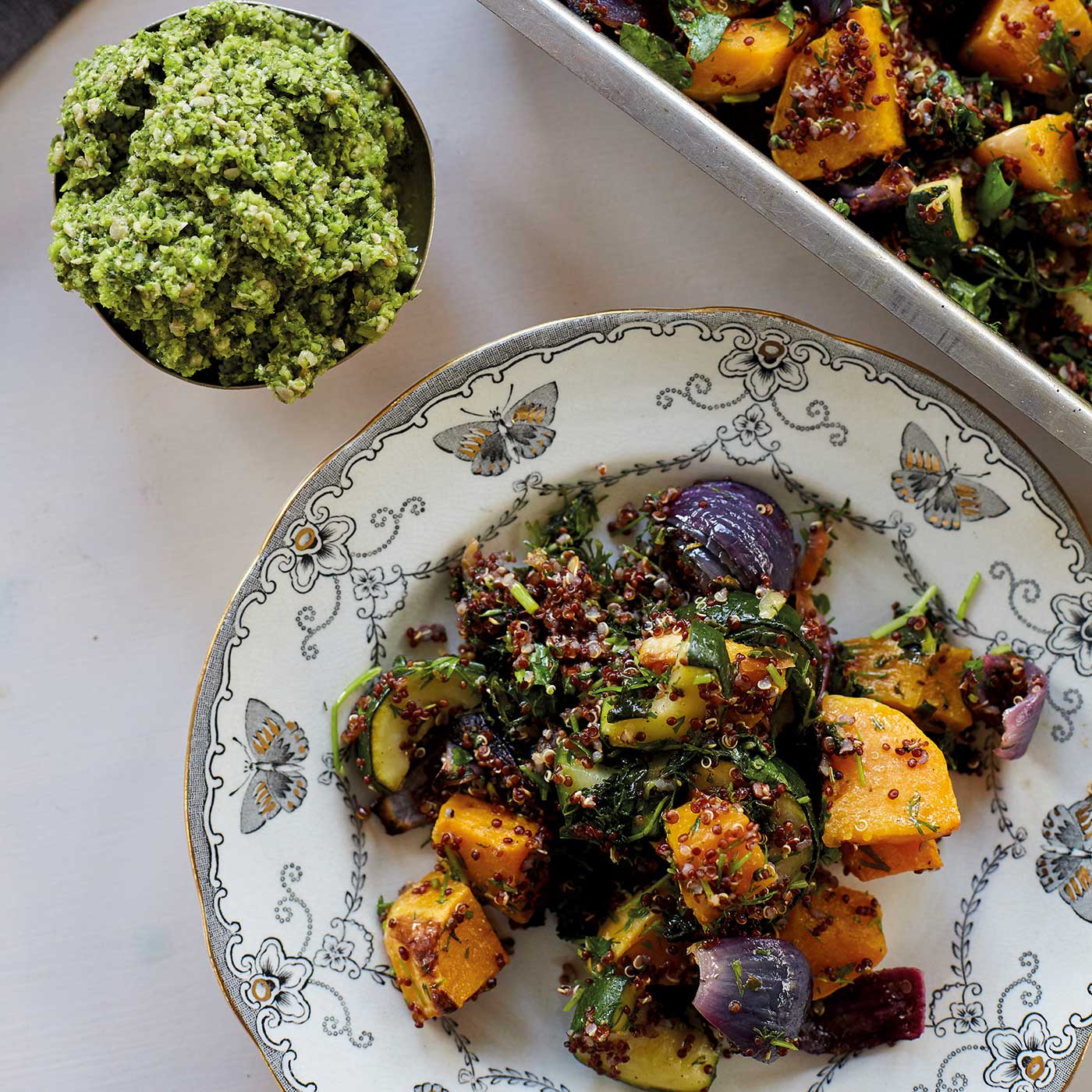 Chilistekt broccoli med fullkornsris, tamari, svamp och jordnötter
