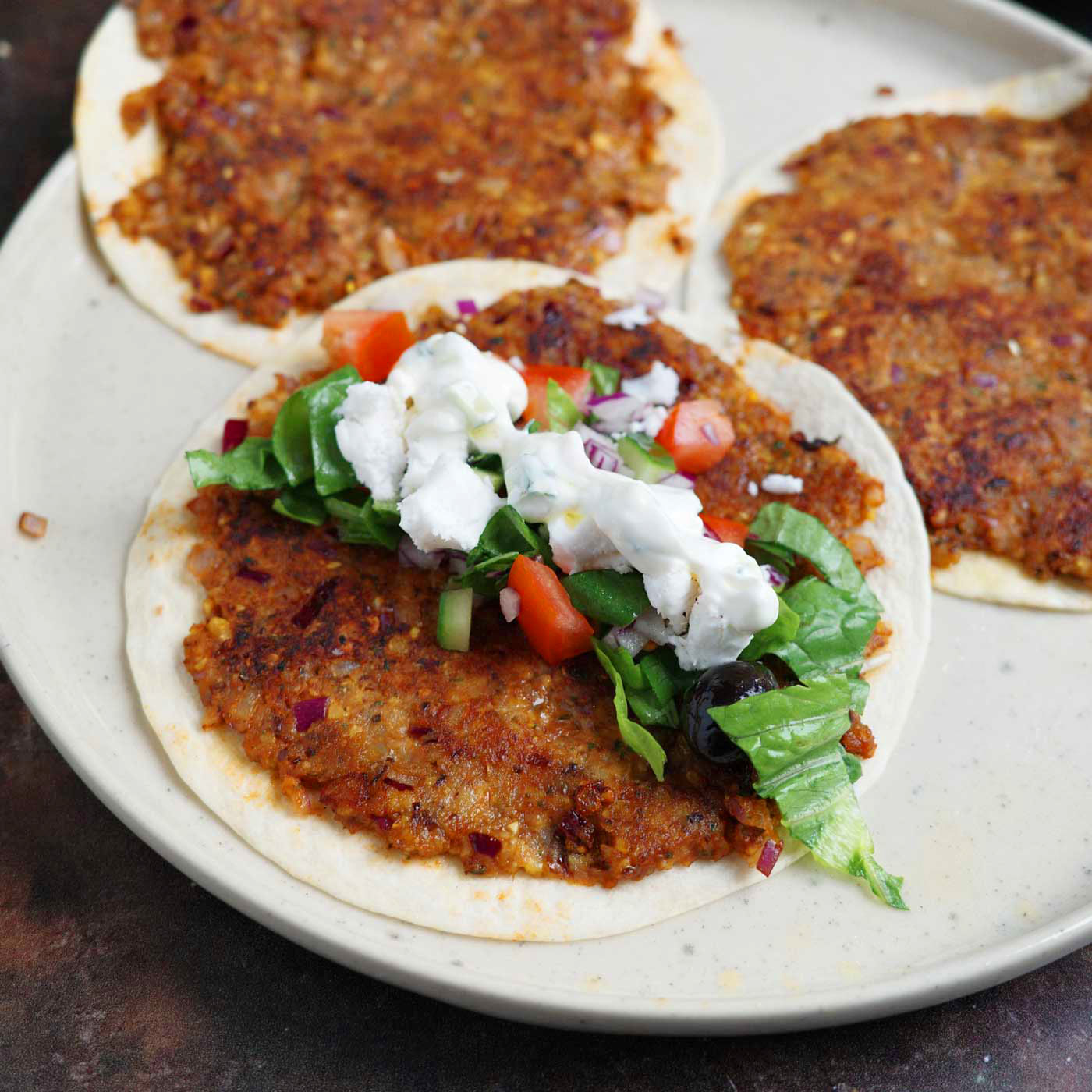 Grekiska smash burger tacos (vegetariska)