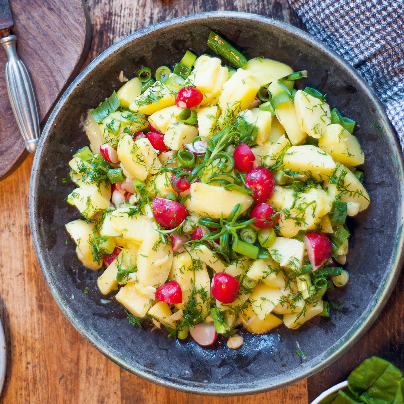 Pizza på färdig deg är så smidigt samtidigt som det blir ruskigt gott. Här toppas den med en frisk citronfärskost och potatis. Skiva potatisen tunt så att den blir lätt krispig i kanterna när den gräddas. Som delikata potatisflarn med rosmarin, vad kan gå fel?